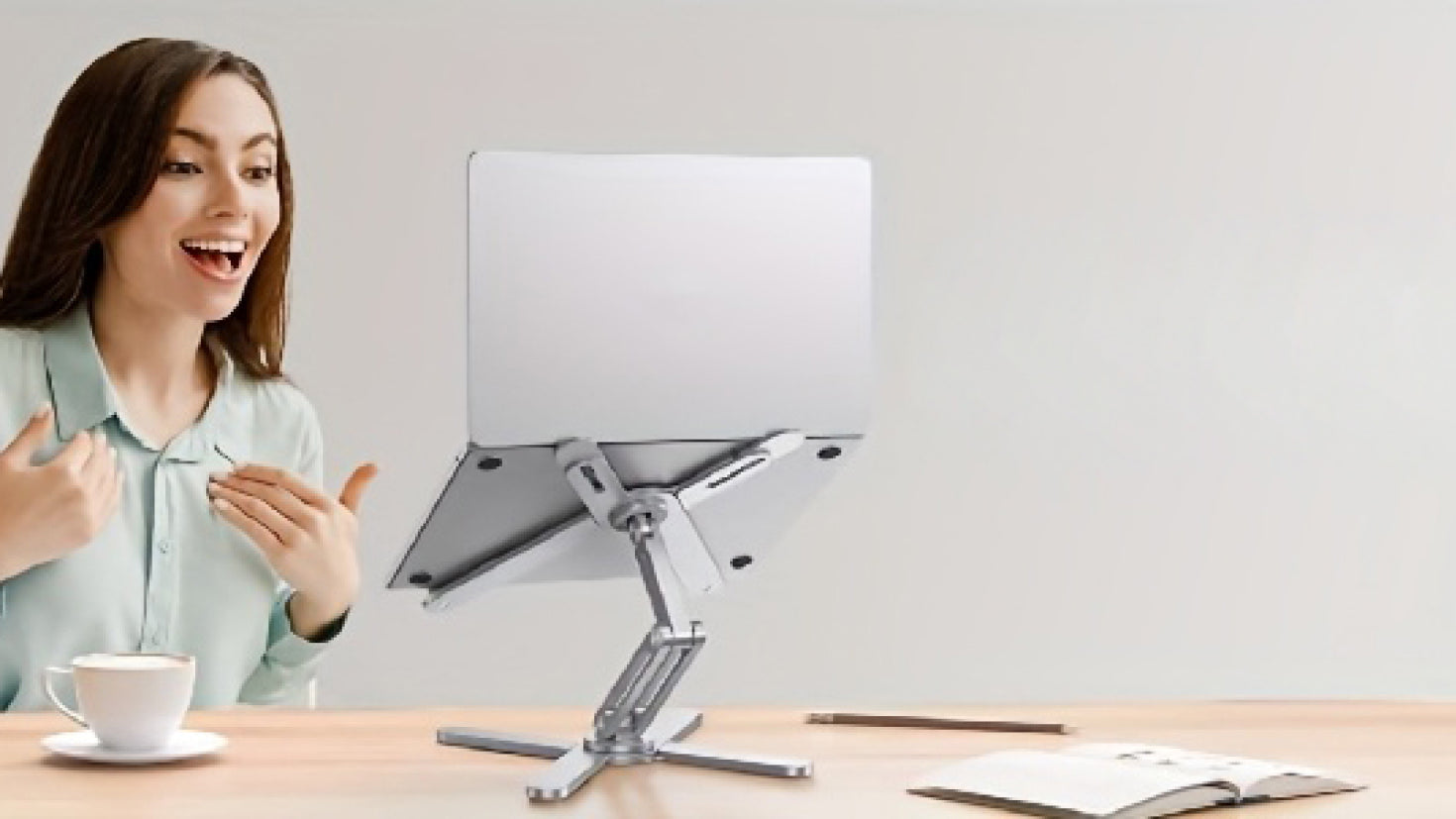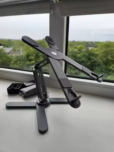 Yes. The open “X” frame and aluminium body dissipate heat naturally, improving airflow and keeping your device cooler during long work sessions.