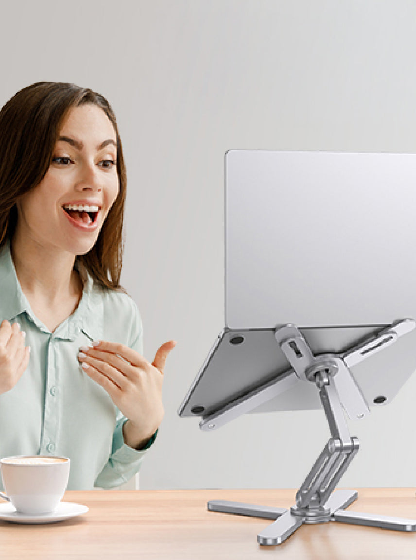 Plastic stands and improvised setups slip, wobble, and can’t hold a consistent viewing angle. The Model-X Pro is engineered from aircraft-grade aluminium with a 360° rotating base and dual-arm “X” structure — giving you total stability, infinite adjustability, and a design that actually enhances your workspace aesthetic.
